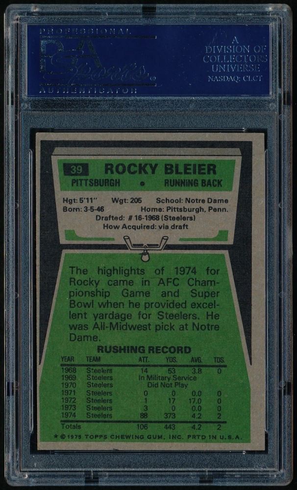 1975 Topps Mel Blount Psa Cardfacts