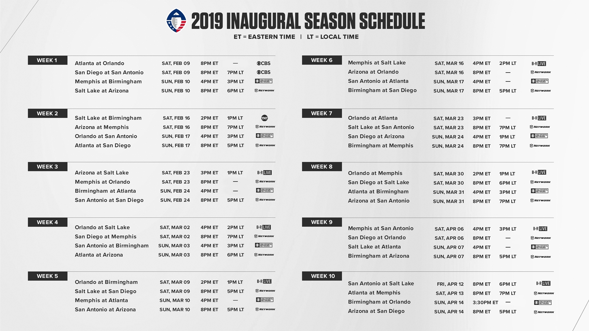We get to see this weekend if the perceptions. Heres where and how to watch alliance of american football games on tv and streaming with the aaf app including the channel schedule and teams. Among the free services to watch alliance of american football aaf live stream xumo is the number one name. The opening season of aaf games will be regionally broadcast by cbs and turner networks nfl network and can stream via fubotv.