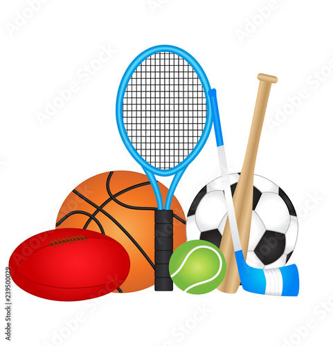 Different Sport Balls Vector Cartoon Icons Set Basketball Soccer