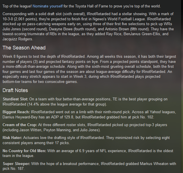 Draft Report Card Yahoo Fantasy Football