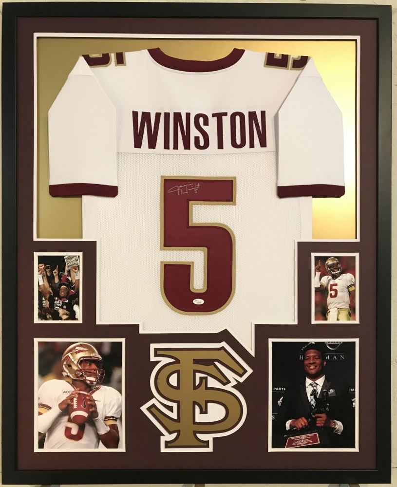 Jameis Winston Signed 34x42 Custom Framed Jersey Display Jsa Coa