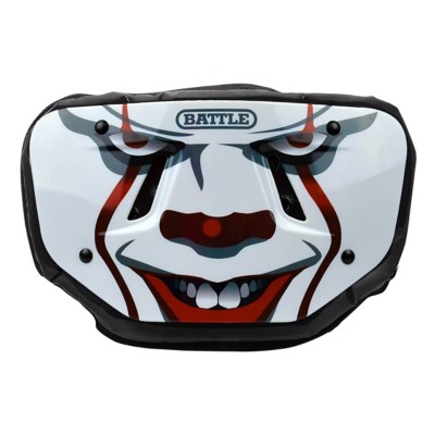 The battle back plate absorbs impact and provides reliable protection to your back region. Floppy back plates wont protect you from painful blindside hits. Features high gloss finish and one size fits most. Our decorated adult and youth football back plates are designed to absorb impact and provide reliable and maximum protection to your back region.