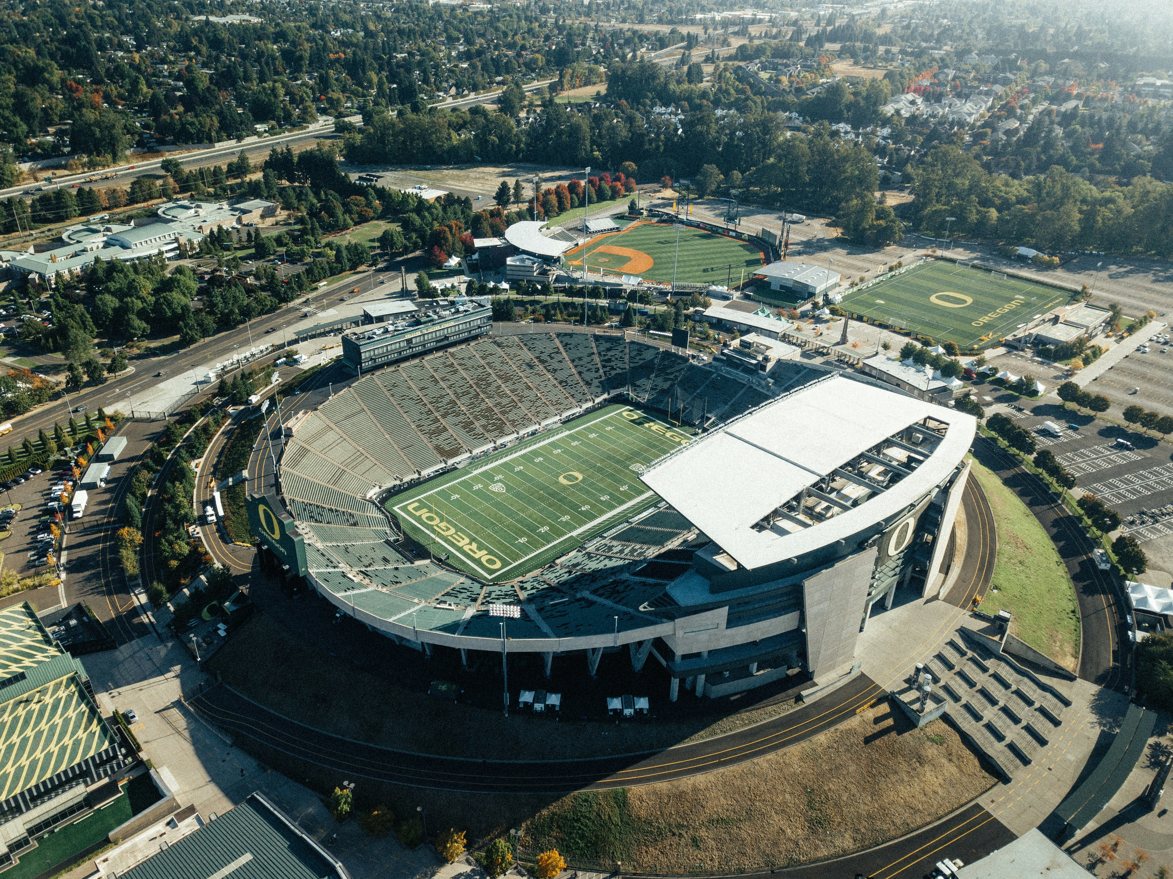Aerial View Of Compact Baseball And Football Field Stock Photo