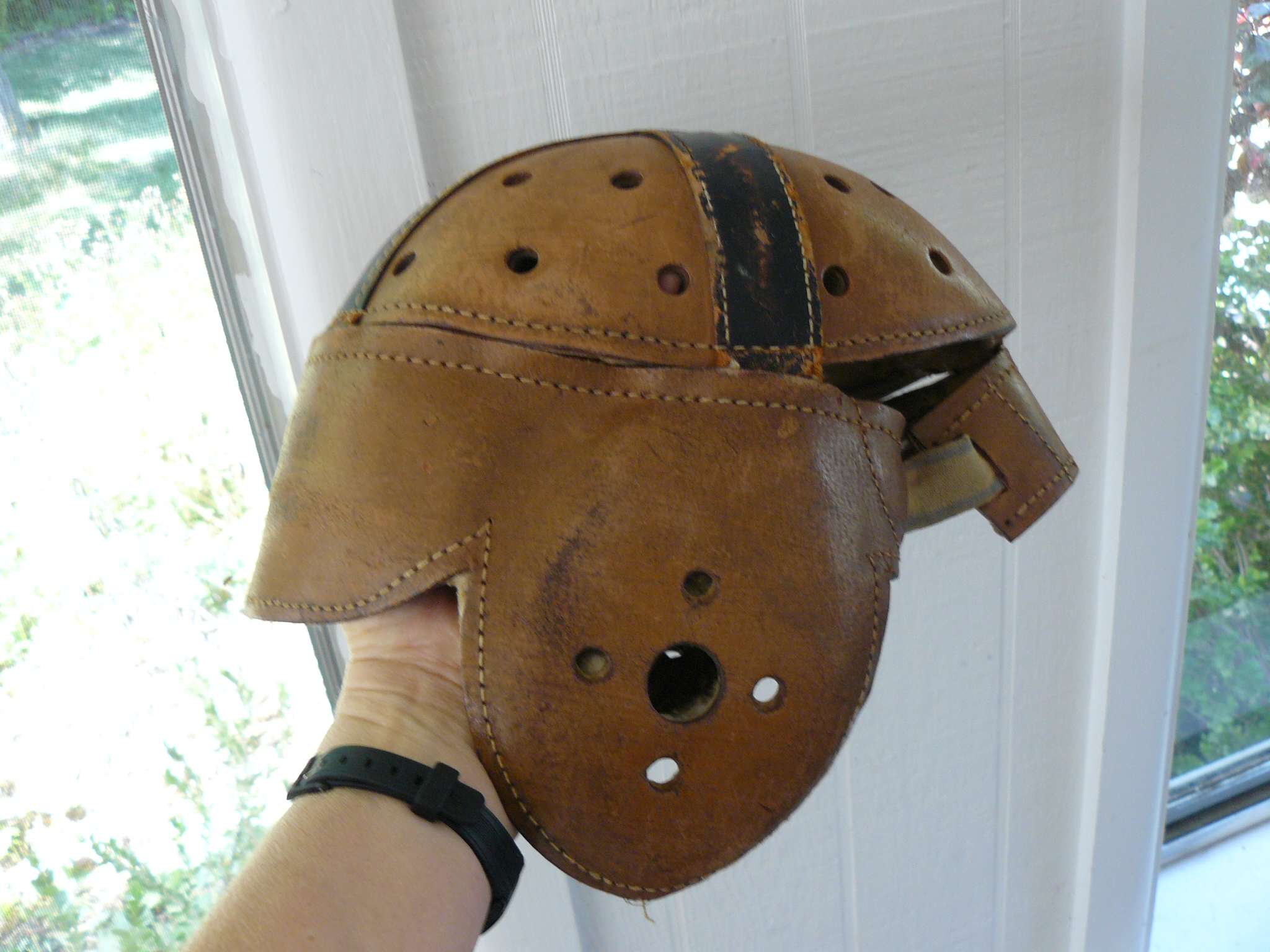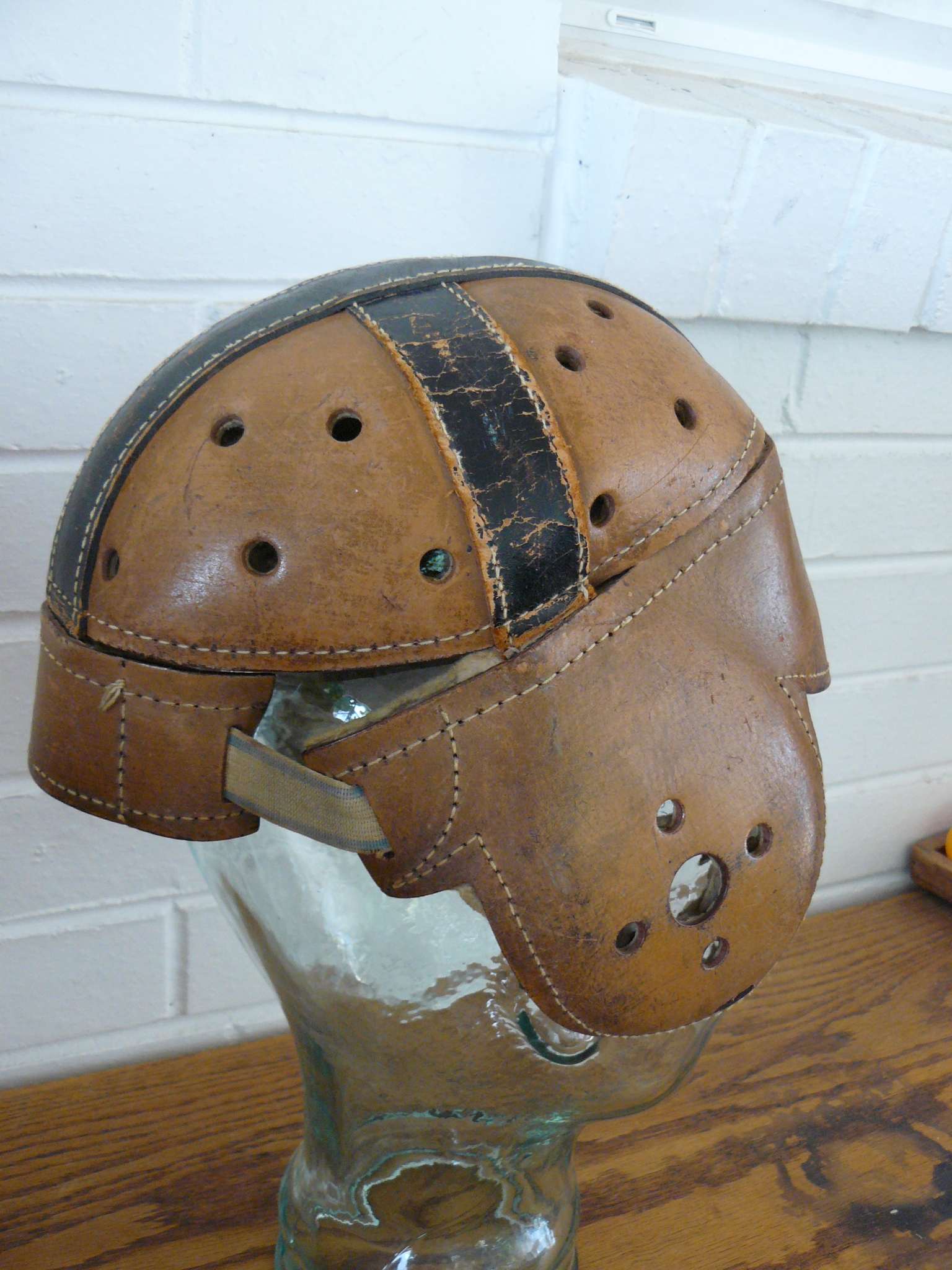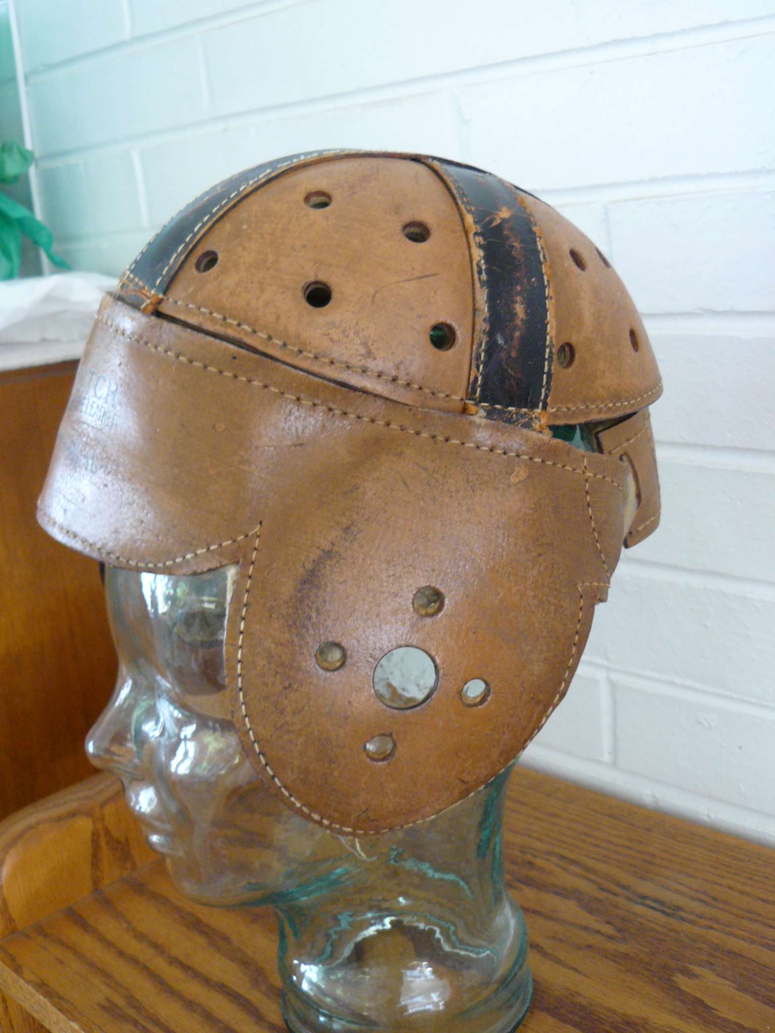 Antique Leather Hutch 18 Football Helmet Air Holes Throughout Is