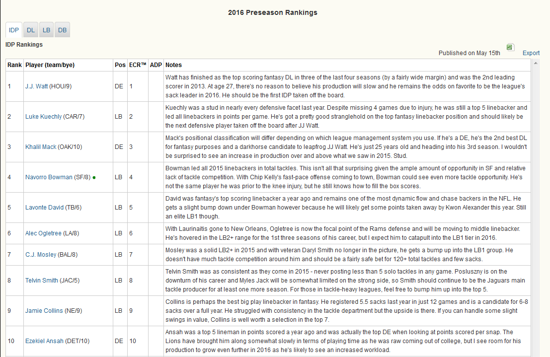 Fantasy Football Idp Rankings Fantasydata