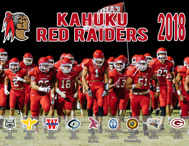 Kahuku 2016 football schedule mascot red raiders team varsity 2016 colors red white coach na address 56 490 kamehameha hwy kahuku hi 96731 overall 11 2 league 6 0 national rank 61 state hi rank 2. Kahuku rallies by mililani for open title 2019 10 27. Kahuku 2019 football schedule mascot red raiders team varsity 2019 colors red white coach sterling carvalho address 56 490 kamehameha hwy kahuku hi 96731 overall 9 4 league 5 3 national rank 73 state hi rank 3. Kahuku holds off upset minded campbell to advance 2019 11 22.