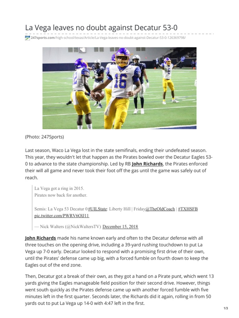 La Vega Emerges With 1st State Title After Wild 2nd Half 33 31