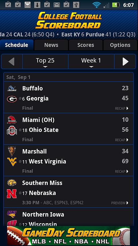 College Football Scores Top 25 Rankings Schedule Saturday Ncaa
