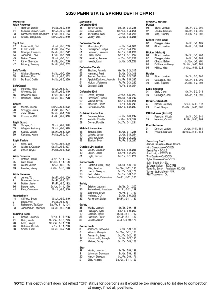 An Early Early Projection Of Penn State S 2020 Depth Chart Lions