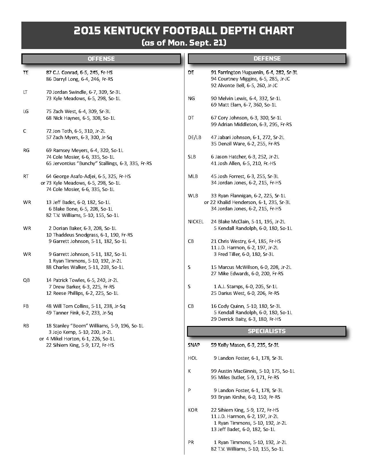 A Way Too Early 2019 Kentucky Football Depth Chart Kentucky